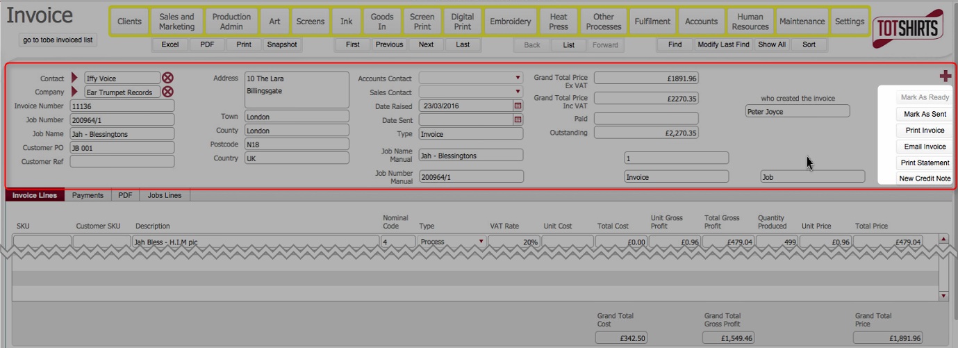 Once an invoice has been marked as ready, it has been finalised from a creation perspective, meaning:-