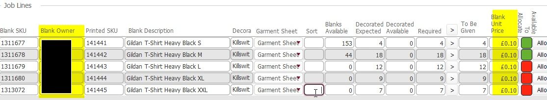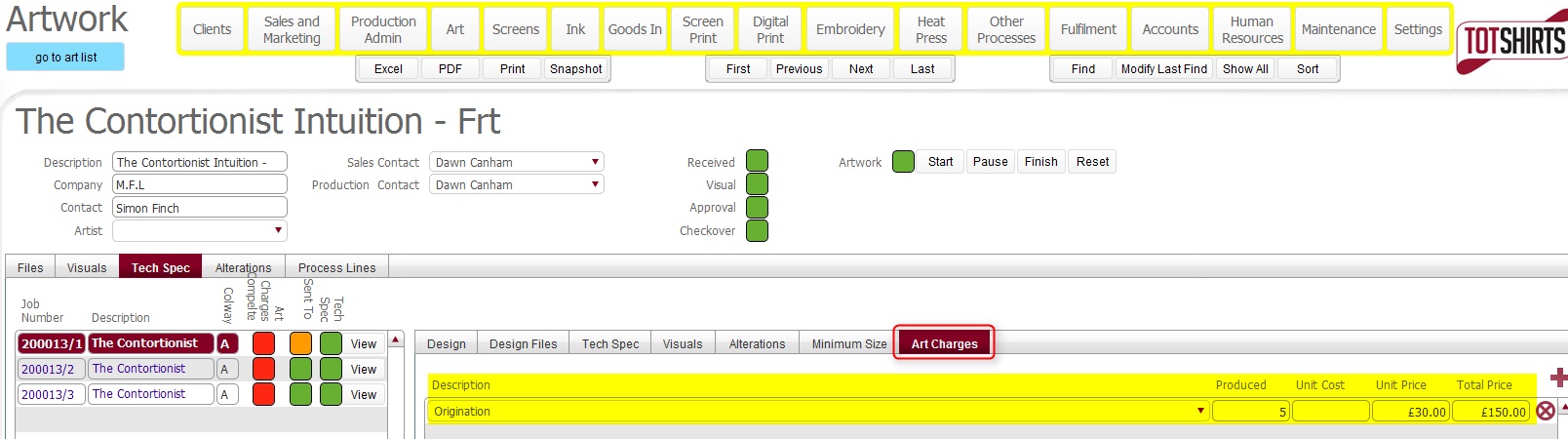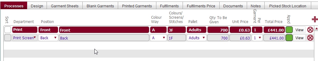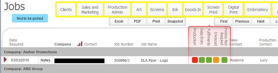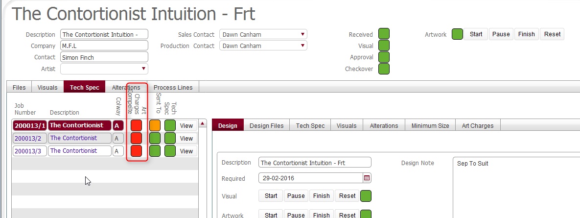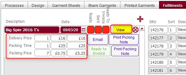 - Note the selection and adding of these fulfilment charges onto a new "fulfilment invoice" would set their individual job line data row record status to Green.
