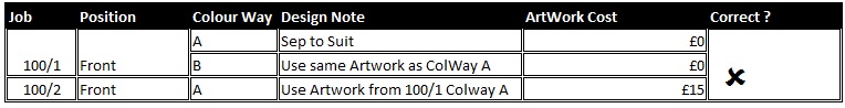 Such is the importance of accurately capturing costs within the processing cycles of our work, that for two of the above cost categories - Art Work Origination and Fulfilment, system traffic light functionality will be added. The traffic lights will be cost specific in that they will need to be set to denote that the applicable costs have been captured / dealt with for the specific record. The Invoicing process will look to the aggregate status of these lights to determine whether an invoice can be raised or not, so it is essential that the setting of these status lights is incorporated into the standard work-flow.