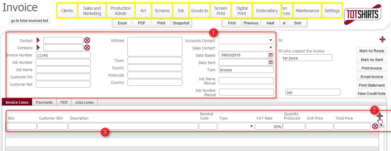 - The new invoice requires processing (this will be covered in detail in help topics, but essentially):-