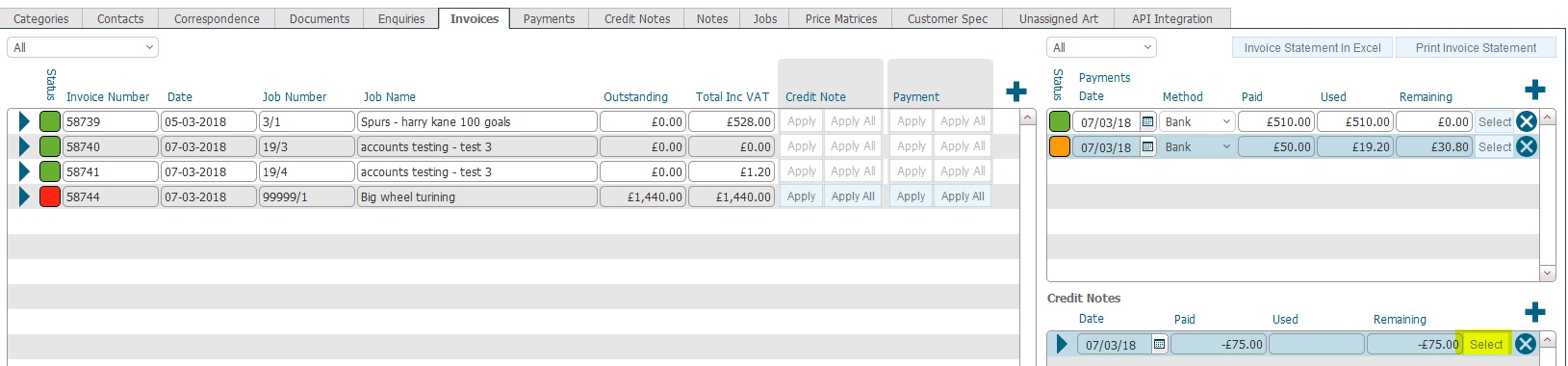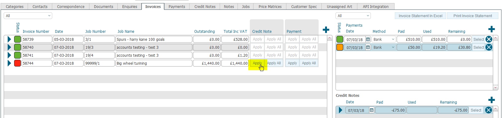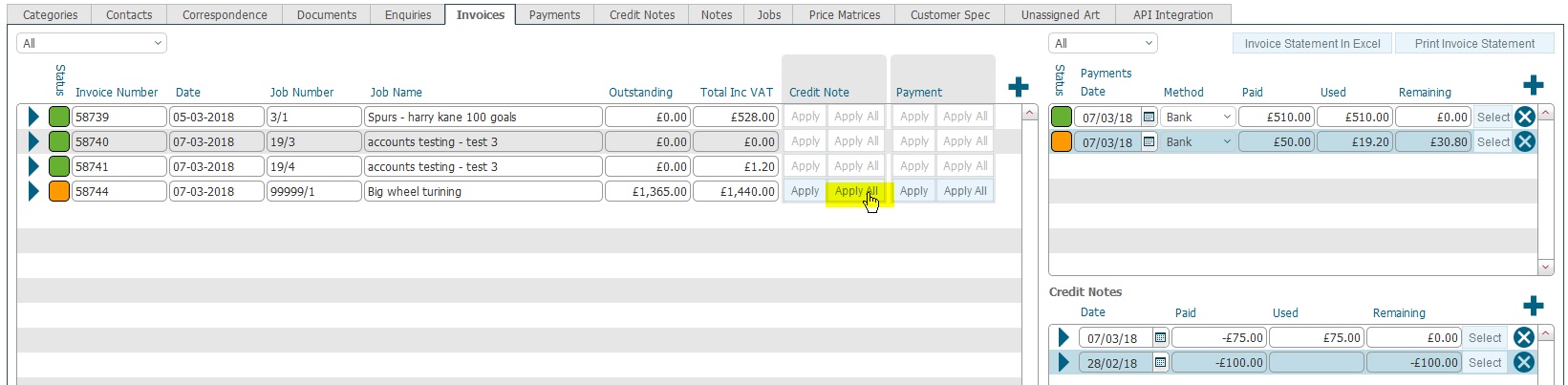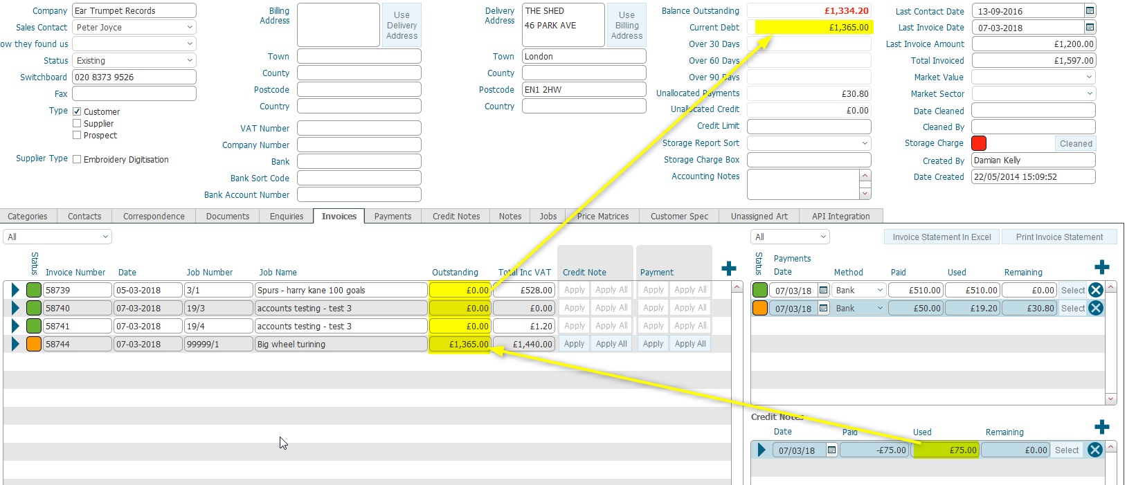 Outstanding is recalculated as Current Debt minus Unallocated Payments