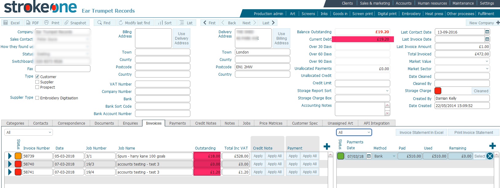 Invoices tab