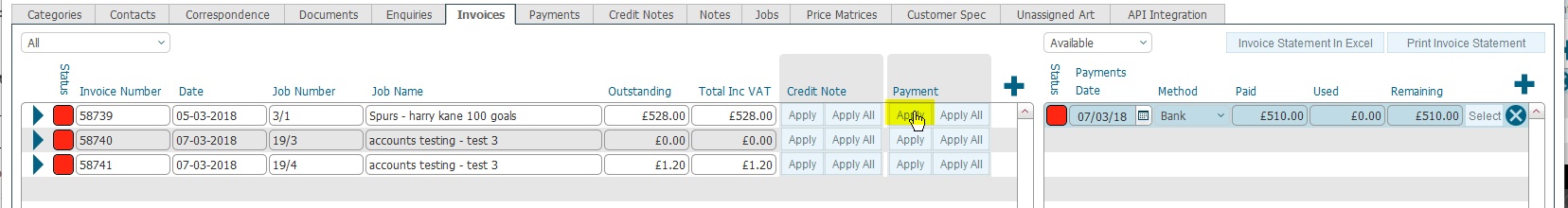 - There are two methods of applying the payment to the Outstanding