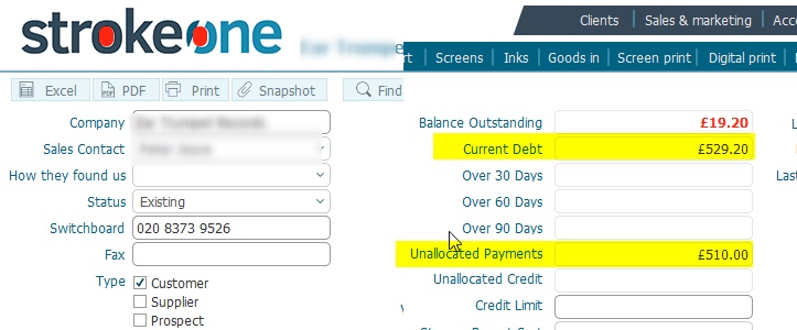 Current Debt is the sum of amounts outstanding on all the client's invoices.