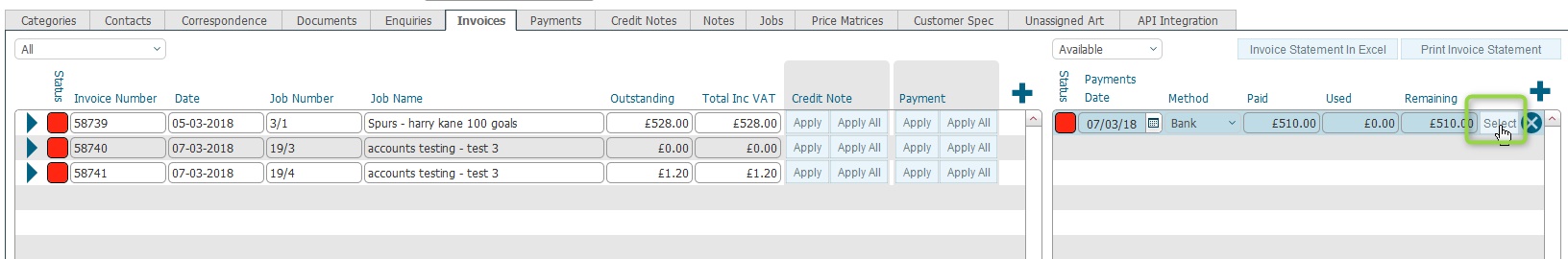 Payment selected in step 3) that can be allocated towards it (GBP510)