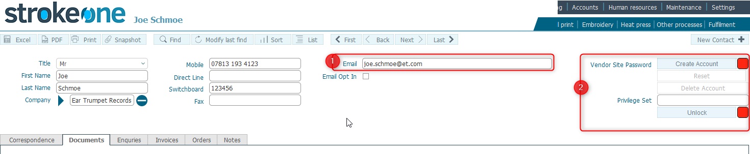 Username :this will have been set with the contact's email address (1), and cannot be changed.