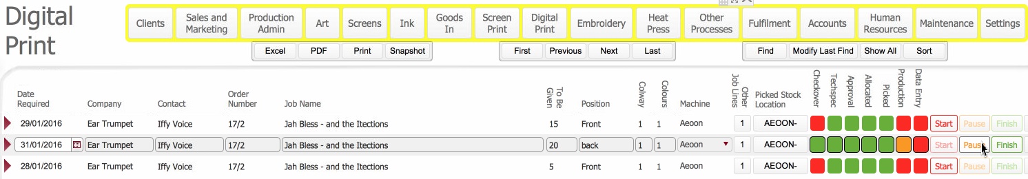 Tip: You can only pause a process that is in progress, i.e. the Production status icon is In Progress (Amber).
