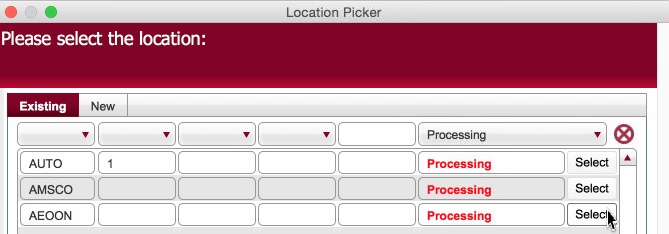 In the location records that are then displayed. click the Select button besides the machine name where you have placed the picked items