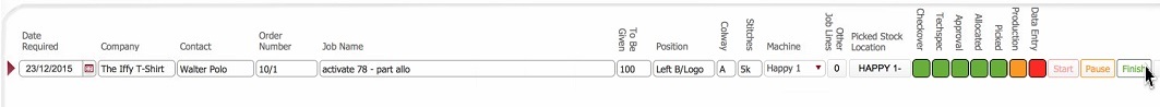 - Note that they may need to be subject to further processing before the whole job order is finished. (for example, the embroidering process may have been for a front, and embroidery is also required on the back, or they might need to be individually bagged or labelled)