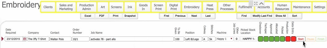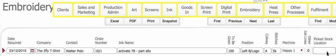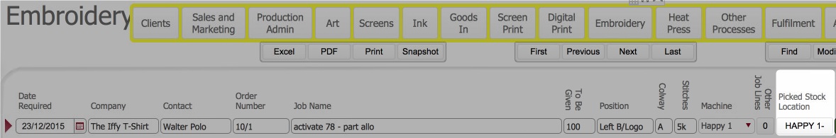 This topic will instruct you how to update strokeone to mark that the above activities has occurred. Namely: update the picked stock location and mark the embroidery process as in progress.