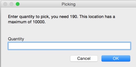 In the Quantity field, enter the number of items that were picked from that location, and click OK