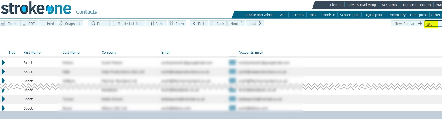 In numerous locations within strokeone, it is possible to search for / filter the records that are shown in the layout.