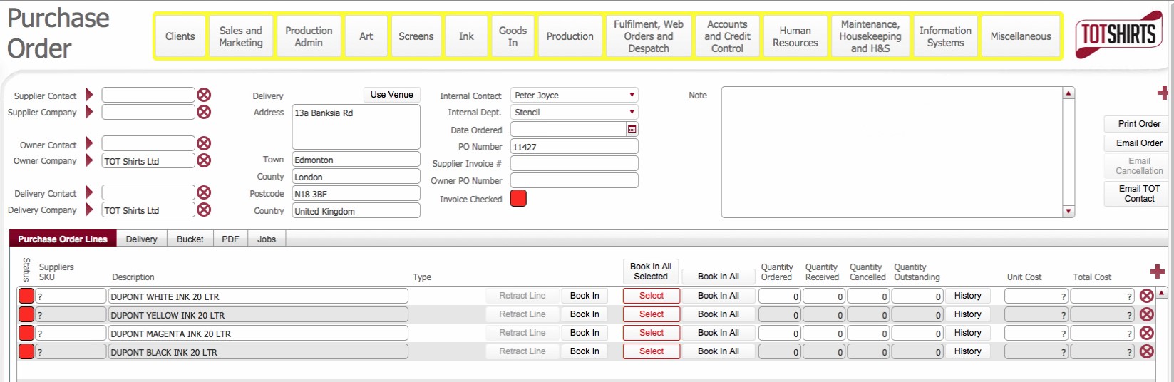 If the order is to be delivered to a specific venue, click the Use Venue button will activate the