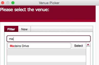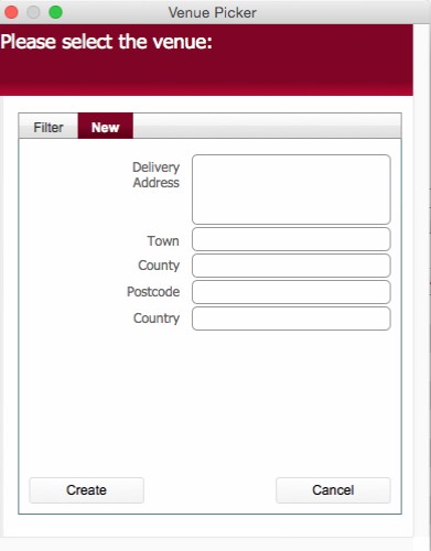 The Venue Picker dialog functions in a very similar fashion to the Contact picker dialog.