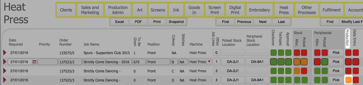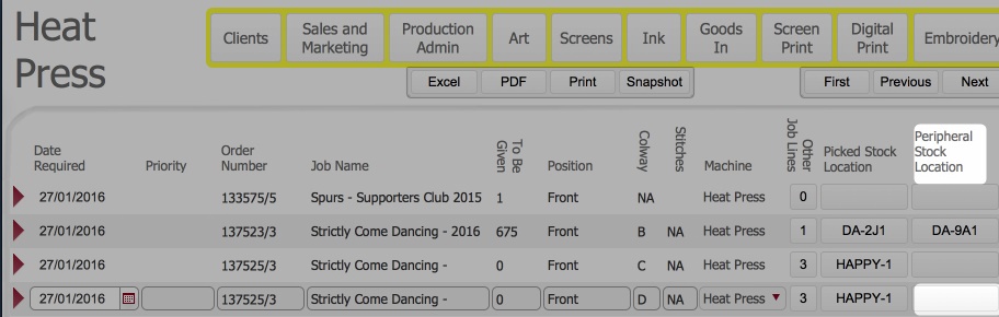 Namely: pick the peripherals; update the picked stock location, update the picked peripheral location and mark the heat press process as in progress.
