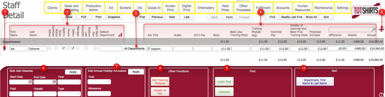 | Difference | Automatically calculated field designed to determine whether a staff member is overpaid relative to the training they have completed. That is, it looks at their current Override Pay and determines whether this is in excess of Basic Plus Training Mods. If it is, it results in a positive difference amount indicating that the staff member is overpaid. |