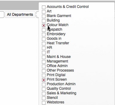 (3) Department button. Clicking this button will display a pop up window that displays which departments the user is associated to. Additionally, you can associate/disassociate a department to the user by enabling / clearing the corresponding check-boxes.