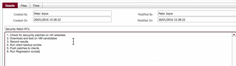 Within this tab, the free-from pane allow you to record detailed / salient information regarding the maintenance taskl.