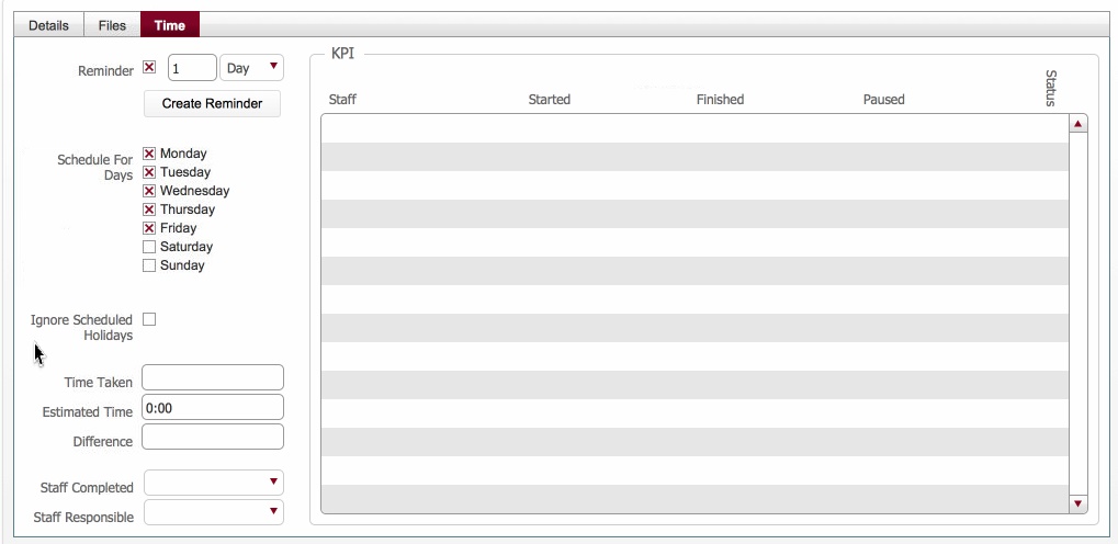 Denotes whether the task should repeat per the frequency / periodicity values. Clicking on this toggles the value between Yes and No. Set No for one off task - Yes for repeat |