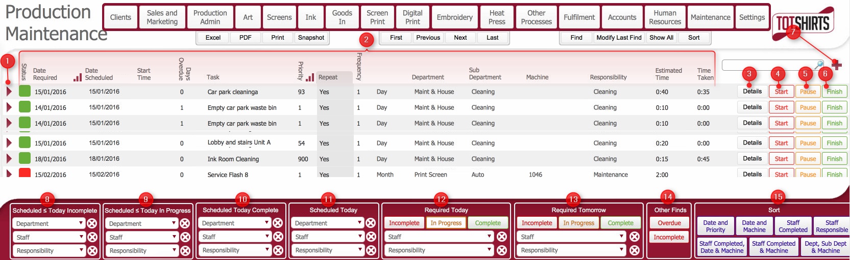 (5) Pause button: Will mark the maintenance task as paused.