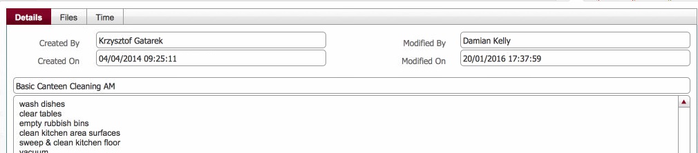 (3) Details button - opens a pop up window which contains a series of additional data fields for the task - click for example