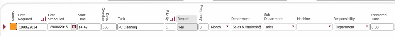 - Locate the maintenance record that you wish to update in the layout.