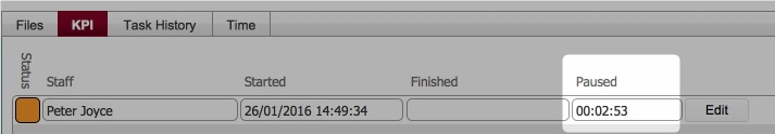 - A KPI timer records the time of the pause.