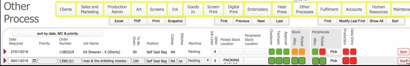 For example, blank stock needs to have been allocated and picked. The start button will be disabled until all necessary prior processes have completed