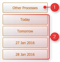 Essentially, the found-set of processes can be filtered down by two dimensions - the machine name that the process is scheduled to be carried out on or the date on which the process is scheduled to occur..