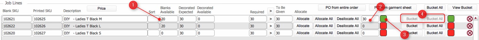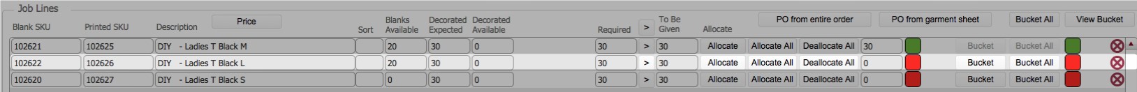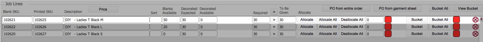 This topic outlines the steps necessary to accurately manually allocate blank stock to a job order via the Garment Sheet.