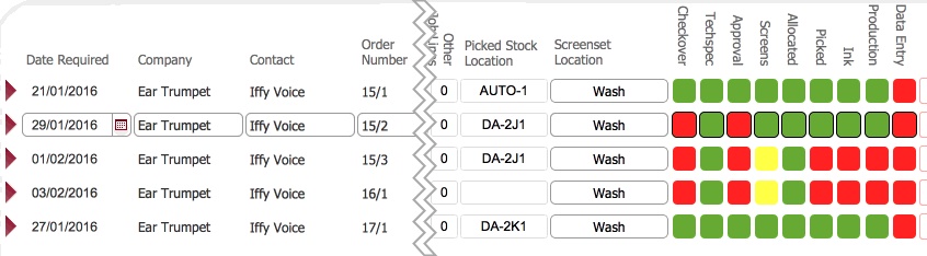 - If there are any scheduled but not yet completed print screen processes then for those records, the Screenset Location also updates to Wash, as does the Screens status.