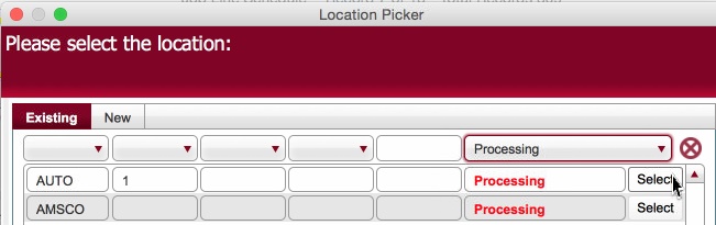 In the location records that are then displayed. click the Select button besides the machine name where you have placed the picked items