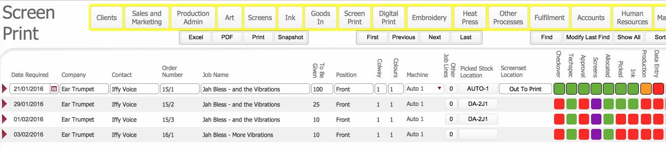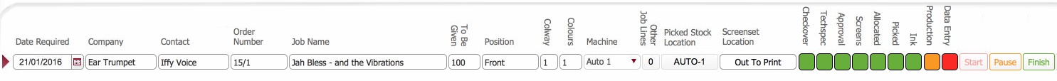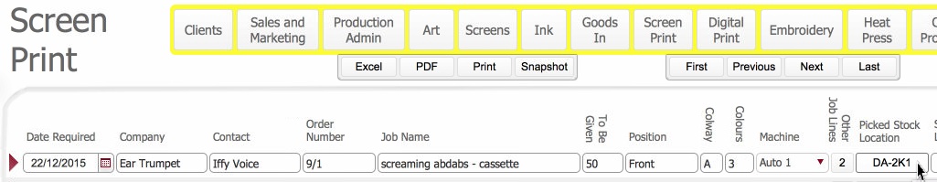 This topic will instruct you how to update strokeone to mark that the above activities has occurred. Namely: update the picked stock location; mark the print screen process as in progress; mark that the screen-set is employed on the print machine.
