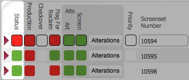 Note: If a screen splits during a print production job, then the screen-set record status will flash on and off to denote the urgency with which it needs to be addressed - see dealing with splits during a print run for more. |
