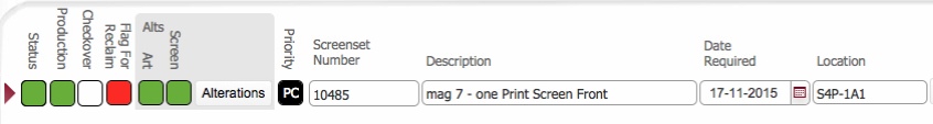 The above noted found set will indicate screen-sets that are required again on a print-run, and as such those that should be prioritised in terms of drawing the screen set down from their current location - whether that is archived, or in post print wash area - such that they can then be fast tracked for pre-checks to aid efficient workflow.