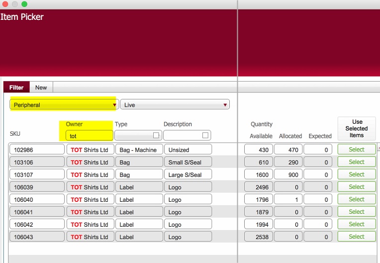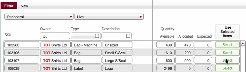 The allocation of peripheral items is conceptually identical to the allocation of blank garments, with two key exceptions:-