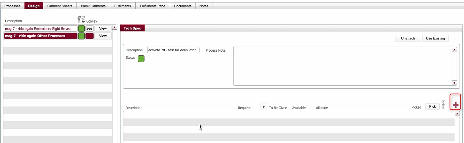 Associating a Technical Spec to a Process Line