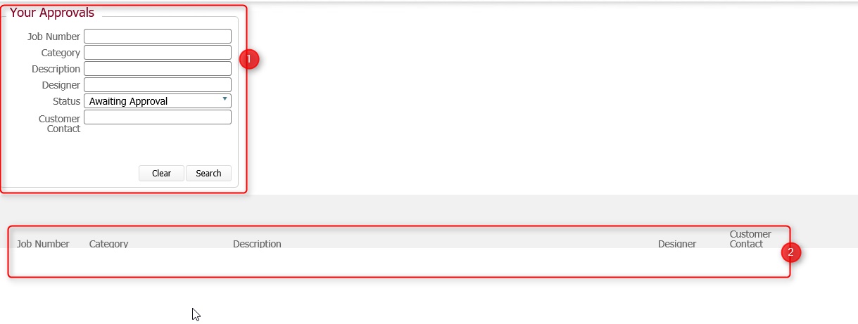 The approvals page is thus made up of two sections.