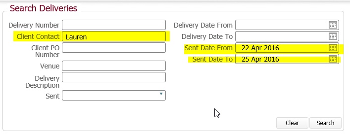 For example, when the above search was submitted, four matching deliveries were returned.
