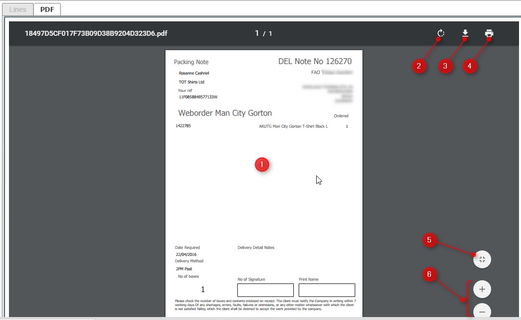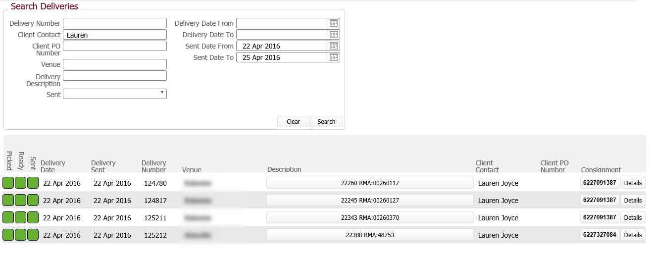 Clicking this button will display a pop-up window which will provide you with details of the delivery.