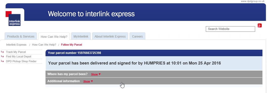 For those of your deliveries that were despatched by Interlink Express, we also provide a link to the courier's web portal to allow you to track your delivery in real time