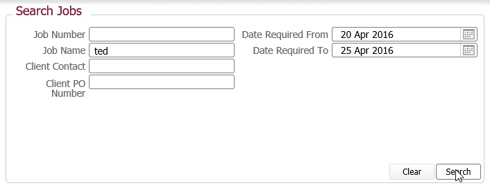 Tip: If you enter any values by mistake, you can click the Clear button which will reset the search criteria back to their default (blank) state.